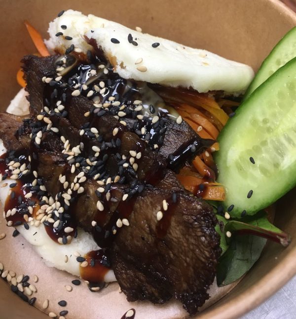 Bao, marineret oksekød, salat og hjemmelavet Kōyo dressing